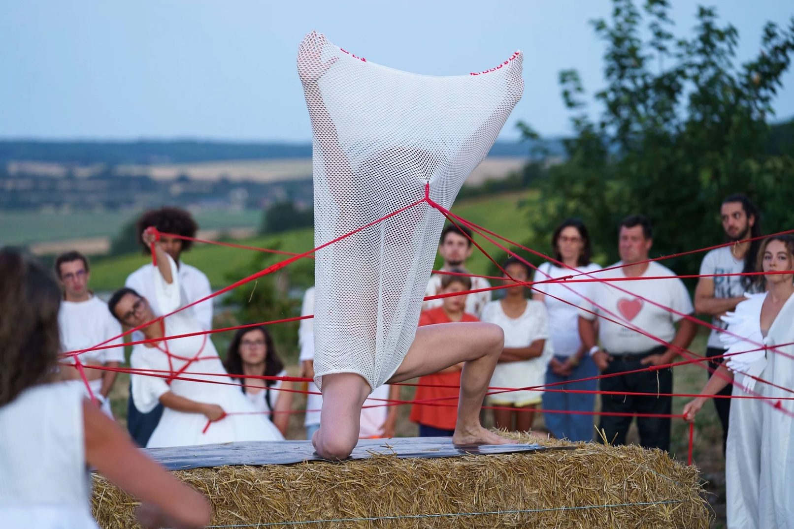 Spectacle « Fil de vie » produit dans les rues de Soffin pour l’ouverture du 18e Festival Chemins des Arts, dans le cadre de l’Atelier de Fabrique Artistique financé par la Direction Régionale des Affaires Culturelles de Bourgogne-Franche-Comté, en partenariat avec l’Agence Patricia Lucas.
