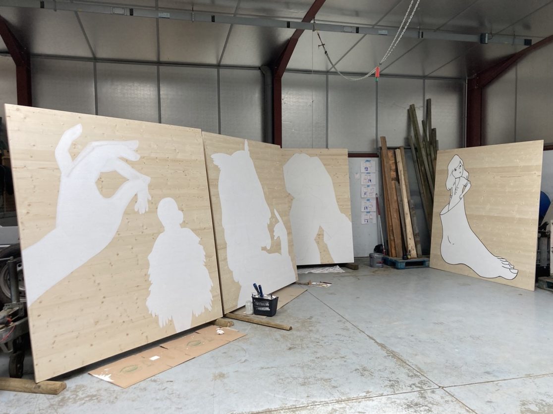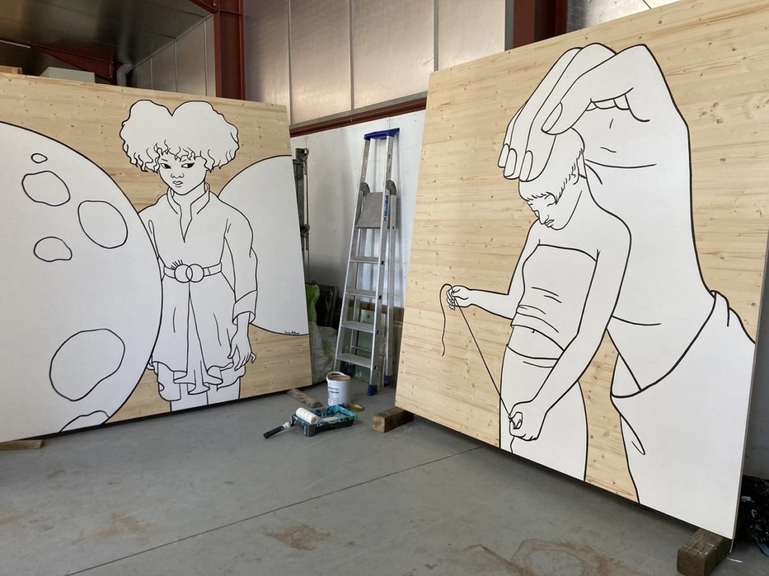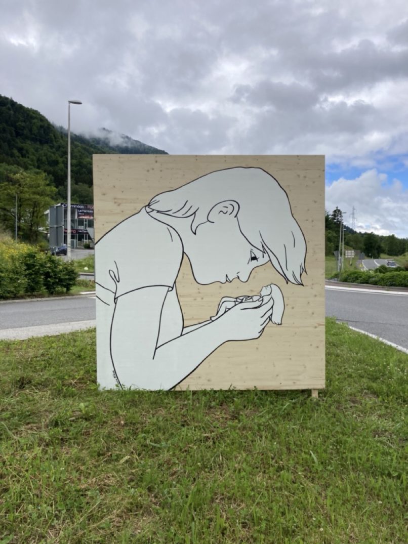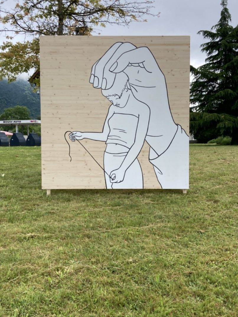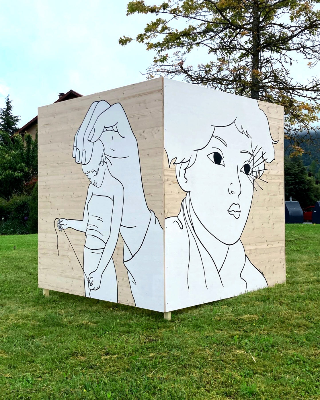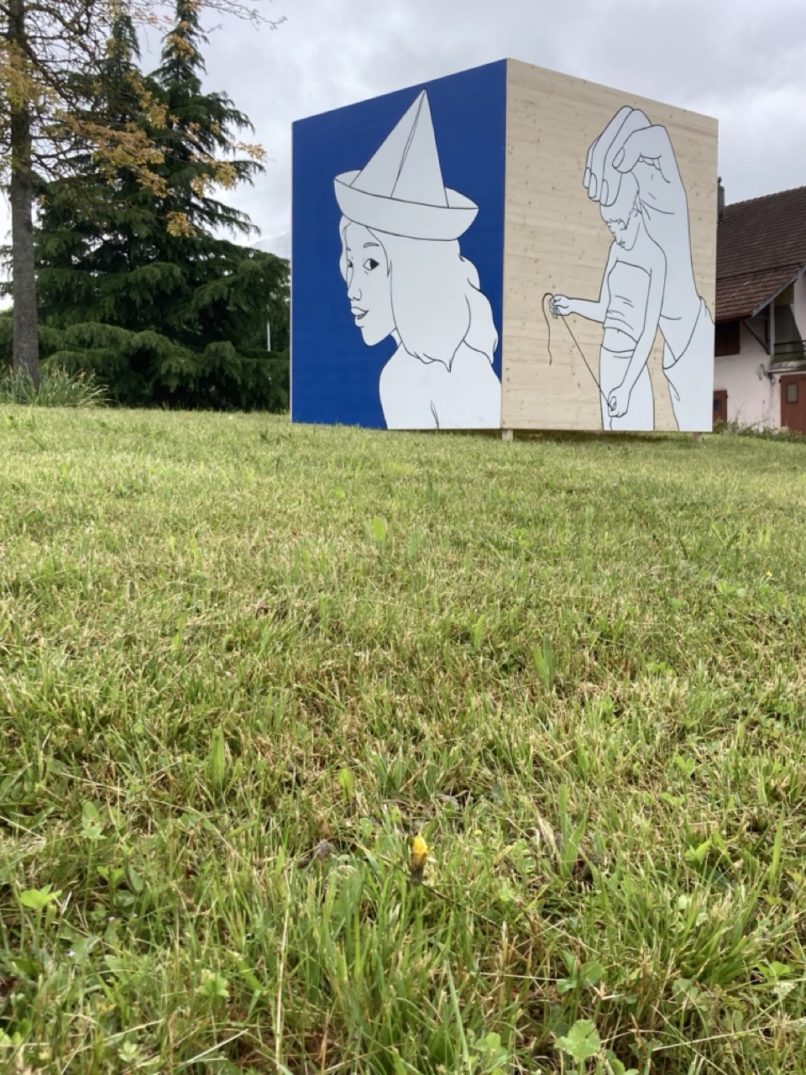 Festival « Plein jour / pleine lune ». Installation répartie sur le territoire de 5 communes.5 Cubes en bois peints. Dimensions : 2m x 2m.